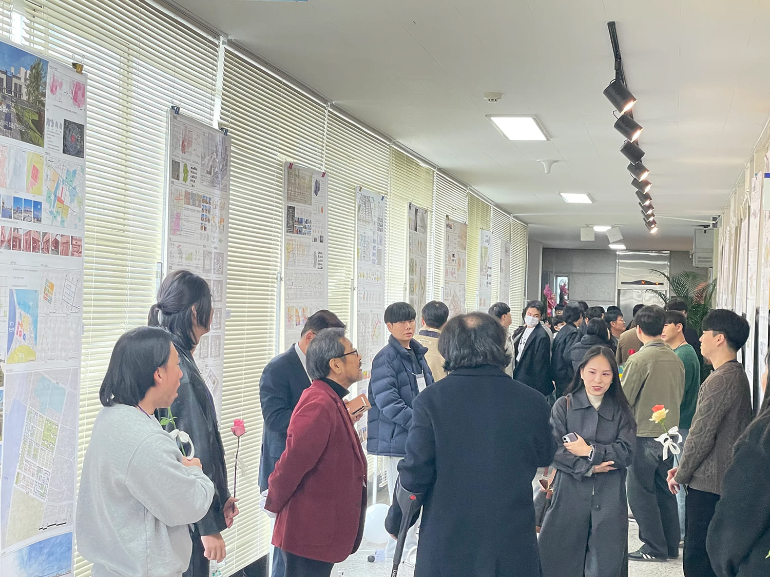 이번 4학년 전시는 익산의 중심시가지 전반을 대상으로 설계를 진행하였고, 다양한 아이디어를 담은 설계안이 도출되었습니다. 매년 성장하는 학생들을 보면서 학과의 발전을 느낄 수 있는 행사이기도 하였습니다.